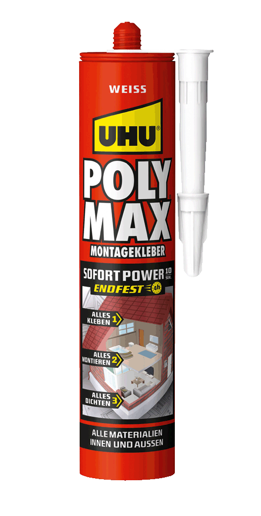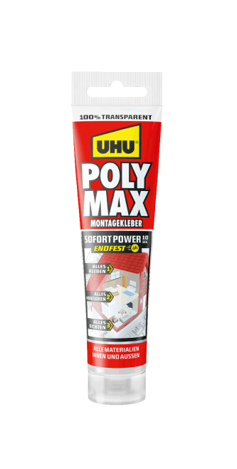 Unsere UHU POLY MAX® Montagekleber überzeugen durch ihre leistungsstarken Eigenschaften.