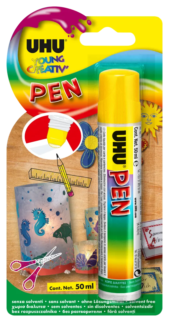 UHU Glue Pen lässt sich einfach mit kaltem Wasser auswaschen.