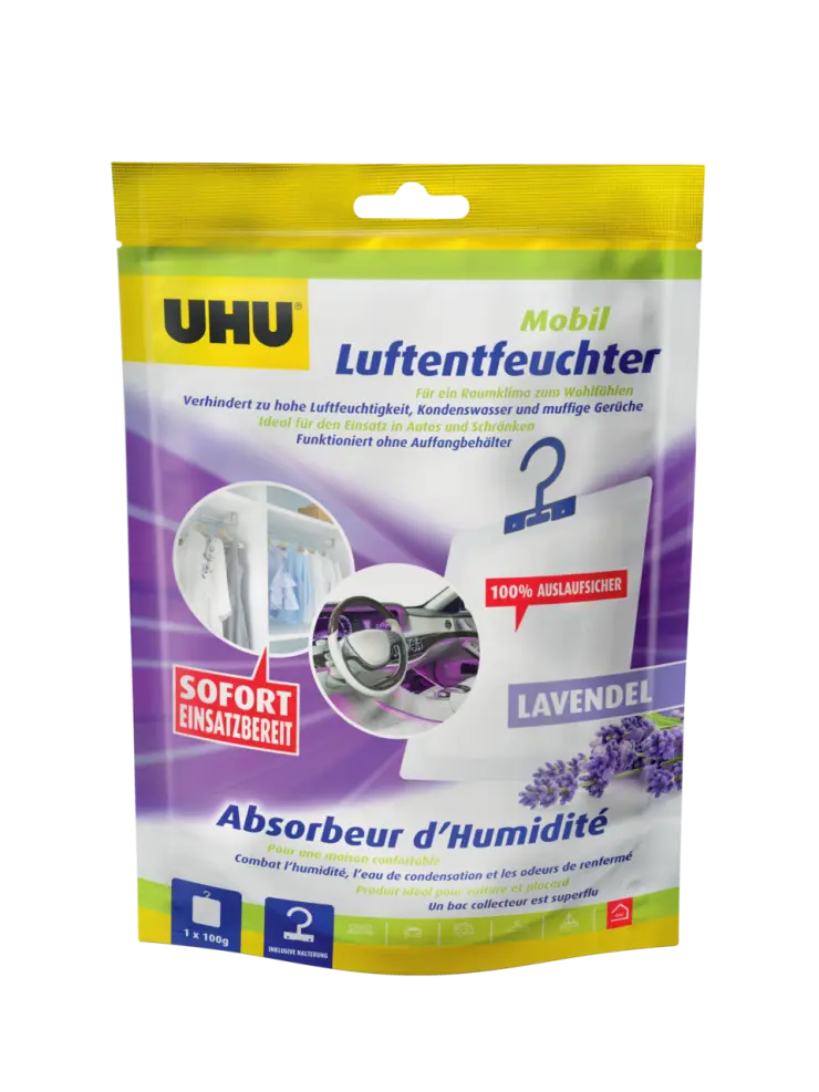 Durch seine kompakte Größe ist Luftentfeuchter Kompakt/Mobil ideal geeignet, um Feuchtigkeitsprobleme in Autos, Kleiderschränken, Umzugs- und Aufbewahrungsboxen, Sporttaschen, Schuhschränken, Wohnwagen, Booten usw. wirksam zu bekämpfen. Luftentfeuchter Kompakt/Mobil lässt sich außerdem mit dem mitgelieferten Aufhänger leicht aufhängen.