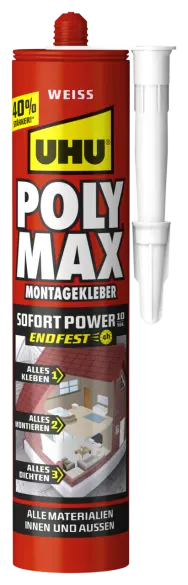 Klebt z.B. Glas, Stein, Naturstein, Beton, Verputz, viele Kunststoffe, Holz, Spanplatten, Trespa®, Eisen, Aluminium, Zink, Stahl, Edelstahl und viele andere Metalle, Keramikfliesen, Kork und Spiegel. Befestigt z.B. Sockelleisten, Latten, Fensterbänke, Türschwellen, Dachkanten, Bauplatten, Isoliermaterialien, Gipsplatten, Verzierungen aus Polystyrol und dekorative Rahmen. Abdichten von z.B. Sockelleisten (Kunststoff), Fensterrahmen, Treppenstufen, Fensterbänken, Türschwellen und Trockenbauwände. Auch zum Abdichten von Rissen in Wänden und Decken geeignet.