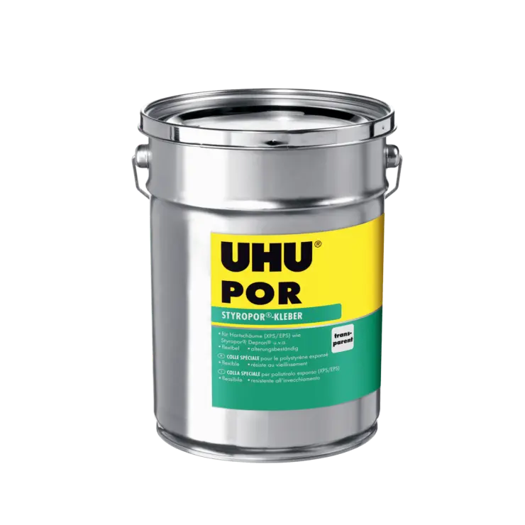 - Schnell anziehender Spezialklebstoff zum Kleben von Polystyrol-Hartschaum (z. B. Styropor®), auch in Kombination mit anderen Materialien