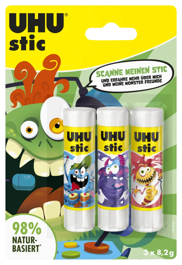 UHU stic wird mit leichtem Druck auf den zu klebenden Materialien aufgetragen. Die Teile werden direkt nach dem Auftragen des Klebstoffes zusammengedrückt.