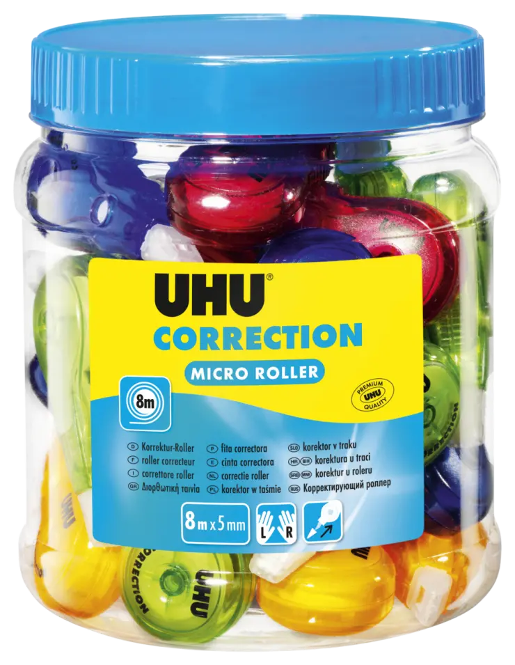 Διορθωτική ταινία Micro roller με μεγάλο μήκος ταινίας. Χρωματιστά micro roller για γρήγορη, καθαρή και ακριβή διόρθωση εκτυπωμένων ή χειρόγραφων κειμένων. Κατάλληλη για σχεδόν όλους τους τύπους χαρτιού. Μπορείτε να γράψετε αμέσως, δεν απαιτείται χρόνος στεγνώματος και δεν περιέχει διαλύτες. Ιδανικό για κασετίνες. Διαθέσιμο σε τέσσερα διαφορετικά χρώματα. Το μήκος της ταινίας είναι 8.0m, το πλάτος της ταινίας είναι 5.0mm. Η συσκευασία είναι κατασκευασμένη από περισσότερο από 85% ανακυκλωμένο χαρτόνι.