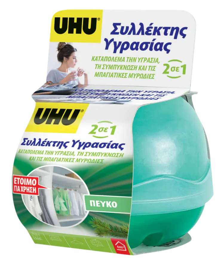 Μειώνει με χρήση ενεργών υγροσκοπικών κρυστάλλων την υπερβολική σχετική υγρασία σε μικρούς (κλειστούς) χώρους με ελάχιστο ή καθόλου εξαερισμό. Απελευθερώνει ταυτόχρονα μία υπέροχη μυρωδιά.