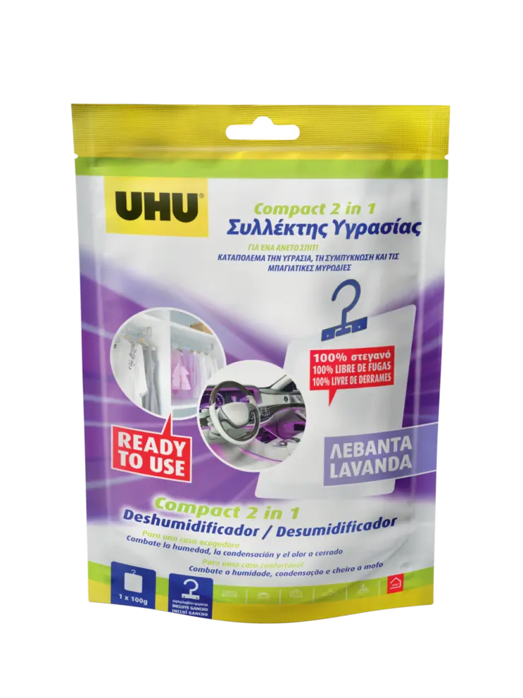 Ιδανικό μέγεθος. Καταπολεμά τα προβλήματα της υγρασίας στο αυτοκίνητο, σε ντουλάπες, σε κουτιά αποθήκευσης, αθλητικές τσάντες, παπουτσοθήκες, τροχόσπιτα, πλοία κ.α.. Ο Συλλέκτης Υγρασίας Compact είναι εύκολος στην χρήση χάρη στο εσωκλειόμενο κρεμαστράκι.