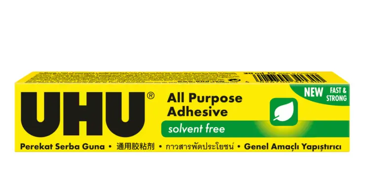 UHU All Purpose Adhesive solvent-free, the modern, high-performance liquid All Purpose Adhesive with high initial tack. Sticks as firmly as the classic. Ideal for office, school, kindergarten and household. Dries fast, is odourless and washes out in wet condition. Glues various materials, including Styrofoam® and PVC. Once applied, the glue remains adjustable for some minutes.