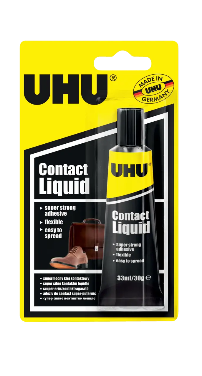 Ideally suited for surface bonding or laminating of many materials that require immediate bonding, loading or processing. Bonds wood, board, veneer, plastic and metal panel boards (HPL, Formica®, for example), (foam) rubber, leather, cork, canvas, linoleum and polyether foam (sound insulation), among other things, to itself as well as to many other surfaces. Also for repairing shoes, bags, toys and carpets, or for doing (hobby) handicraft work.