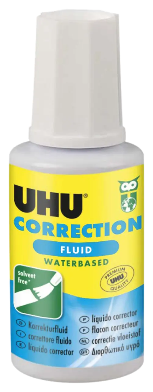 White, waterbased correction fluid for fast correction of larger areas on all common types of paper (except thermal paper). The white fluid dries fast, has a high covering power and is solvent free. In a handy bottle with integrated brush for use at home, school, and the office. The packaging is made of more than 85% recycled cardboard.