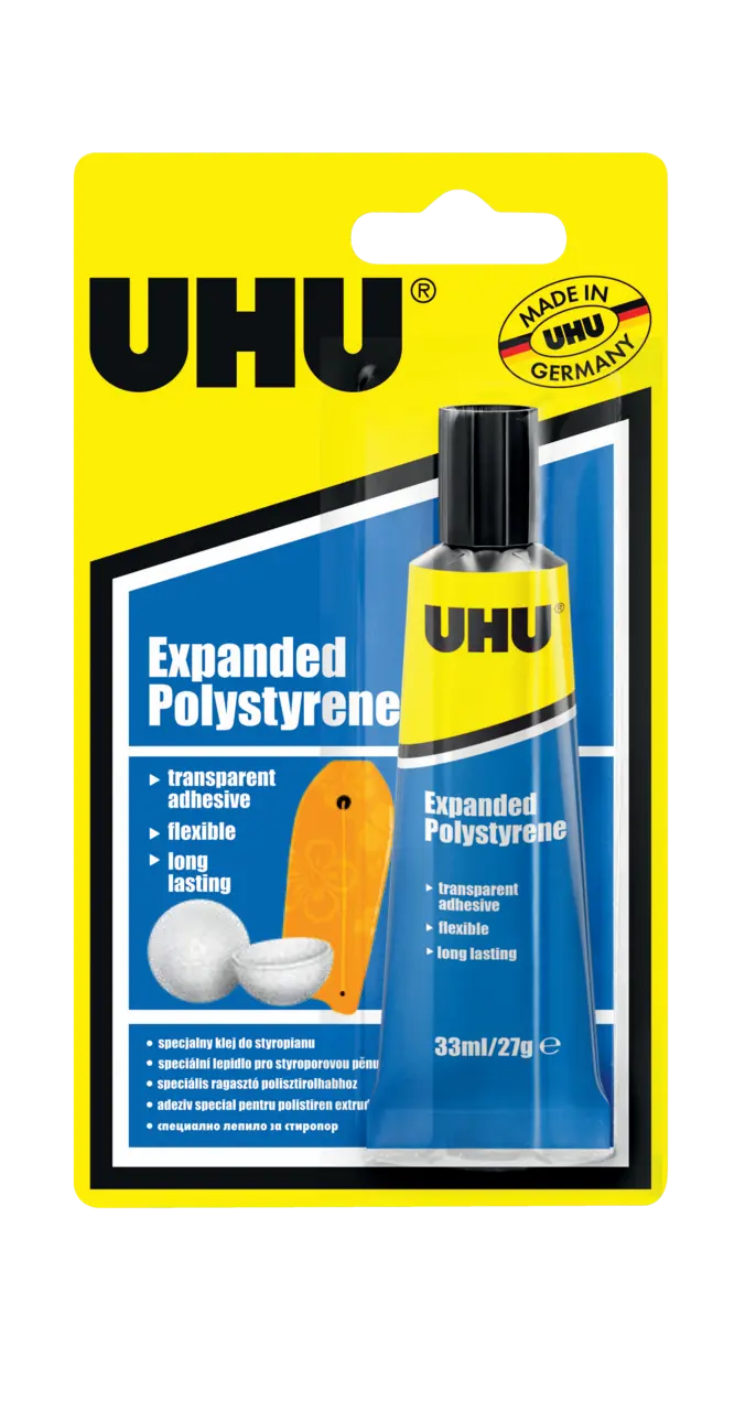 Suitable for expanded polysterene, e.g. Styropor® also in combination with other materials, e.g. wood, paper, metal, ceramic, plaster, fabric and various plastics.