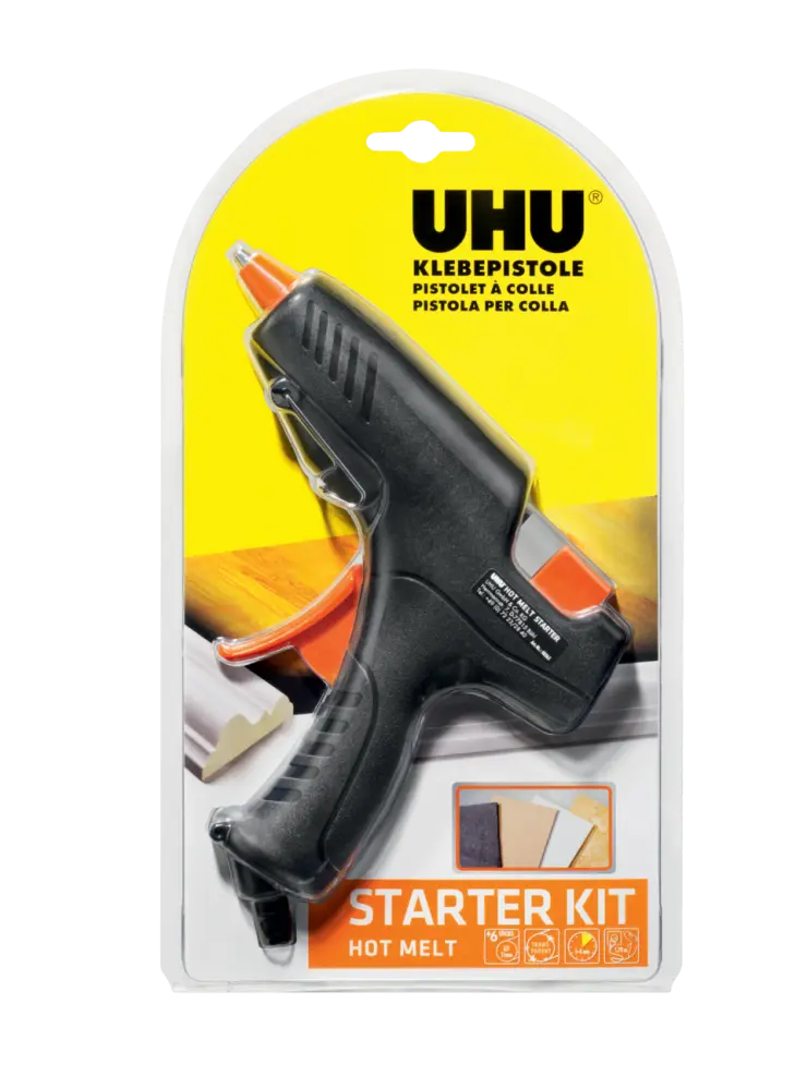 Glues many porous and non porous materials in seconds such as wood, metal, stone, glass, tiles, ceramic, leather, textiles and many plastics. With a high meltig capacity and is suited for DIY and all household repairs. Glues almost all materials quickly, neatly, permanently and reliably. Ideal for fixing, repairing, isolating and sealing. For example carpets, shoe soles and heels, mounting laths, skirting boards or glueing a loose tile. Multifunctional. Especially for do-it-youself and semi-professional use.