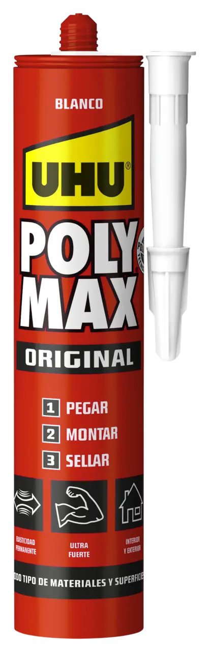 Bonding: e.g. glass, stone, natural stone, concrete, plasterwork, many synthetic materials, wood, chipboard, Trespa®, iron, aluminium, zinc, steel, stainless steel and other metals, ceramic tiles, cork and mirrors. Fixing: e.g. skirting boards, lathing, window sills, doorsteps, roof edges, construction boards, insulation materials, gypsum boards, polystyrene ornaments and decorative frames. Sealing: e.g. skirting boards (synthetics), window frames, stair steps, window sills, doorsteps and drywalls. Also suitable for sealing cracks in walls and ceilings.