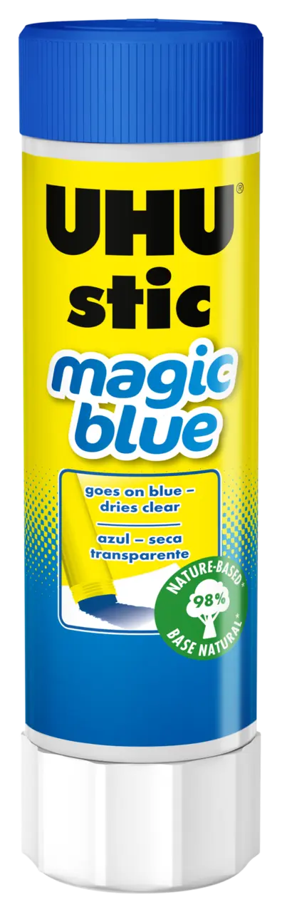 UHU stic Magic Blue is applied with light pressure onto the materials to be glued. The parts are put together immediately after applying the glue. The blue color disappears a few seconds after application and it is transparent when dry.