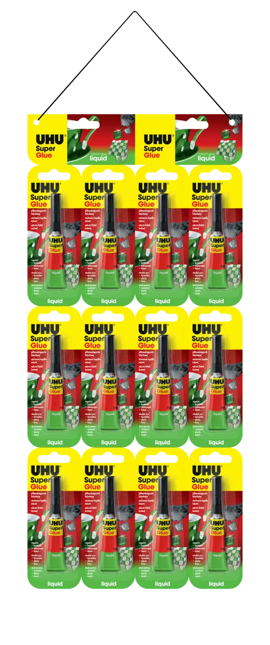 Ideal for small-area bonds. Glues almost all solid and flexible materials like many plastics (such as rigid PVC, ABS, PS, Plexiglas®, polycarbonate (Makrolon®), and phenolic resins (Bakelite®)), porcelain, ceramics, leather, metal, wood, cork, felt, cloth (check suitability first), and rubber. Only partly suitable for glass (over a certain period of time the bond becomes brittle, causing it to weaken).