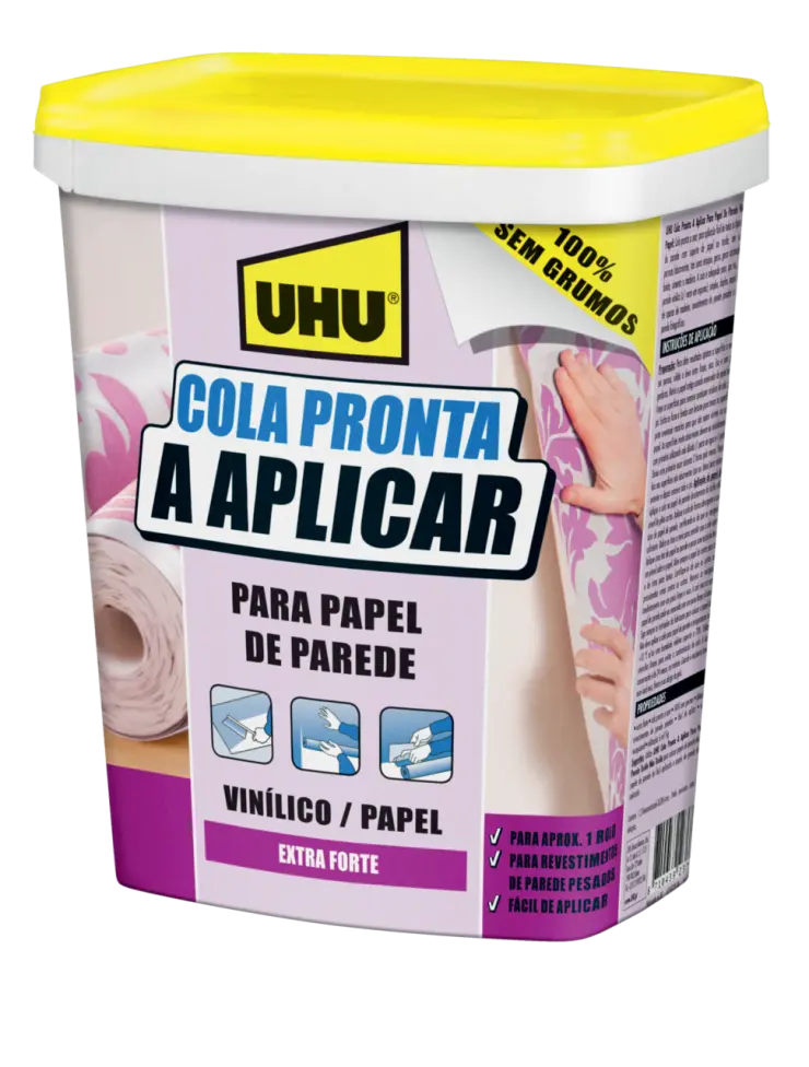 Utilice la cola lista de vellón para colgar papeles pintados no tejidos, papeles pintados fáciles y papeles pintados rápidos. Utilice la cola lista de fibra de vidrio para colgar papeles pintados de fibra de vidrio y de tejido de vidrio.