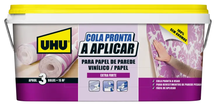 Utilice la cola lista de vellón para colgar papeles pintados no tejidos, papeles pintados fáciles y papeles pintados rápidos. Utilice la cola lista de fibra de vidrio para colgar papeles pintados de fibra de vidrio y de tejido de vidrio.