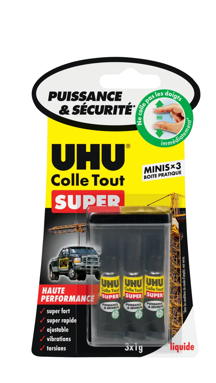 Contient du cyanoacrylate. Colle la peau et les paupières en quelques secondes. Si le produit entre en contact avec les yeux, rincer immédiatement avec beaucoup d'eau et consulter un médecin. En cas de contact avec la peau, la colle peut être dissoute par trempage dans de l'eau chaude savonneuse. Appliquer ensuite de la crème pour la peau. À conserver hors de la portée des enfants.