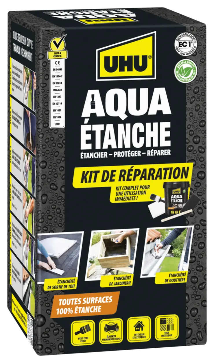 Rendre étanche, protéger et réparer la plupart des matériaux tels que le bois, le béton, la pierre, le métal, le zinc, le bitume, l'EPDM (essayer au préalable), le PVC, etc. Adhère même très bien au PP/PE. Convient pour des applications tant à l'intérieur qu'à l'extérieur, comme dans les salles de bains, sur les toits, dans les caves, au niveau des murs et dans les jardins. Pour rendre étanche à l'eau les écoulements de douche, les joints entre les murs et le sol, les gouttières, les traversées de tuyaux, les raccords au niveau des châssis et des puits de lumière, les éléments de construction au niveau du sol, etc. Convient aussi comme sous couche antidérapante, comme protection pour le bois (les poteaux de jardin, par exemple) et le métal et comme enduit.