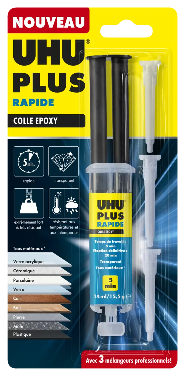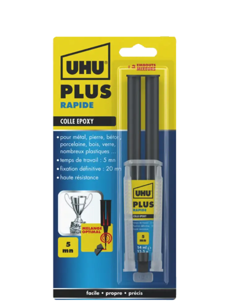 Convient pour réparer de façon rapide, invisible et solide un grand nombre de matériaux, tels que la poterie, la porcelaine, le verre, le cuir, le bois, la pierre, le métal et la céramique , entre eux ou les uns avec les autres.