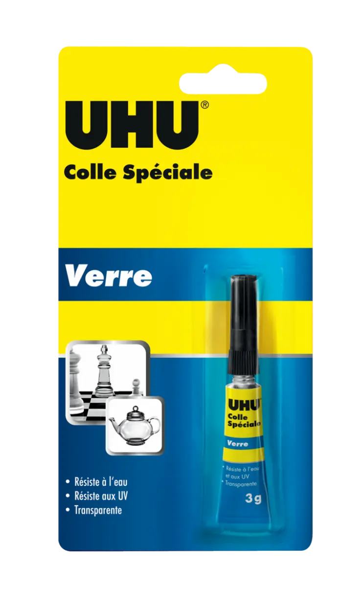 Colle le verre et le cristal à eux-mêmes et au métal. Idéal pour coller et réparer des objets en verre et en cristal, comme un vase, un verre à boire, une carafe, une statue, un bol, une vitrine, une table, une lampe ou un cadre.