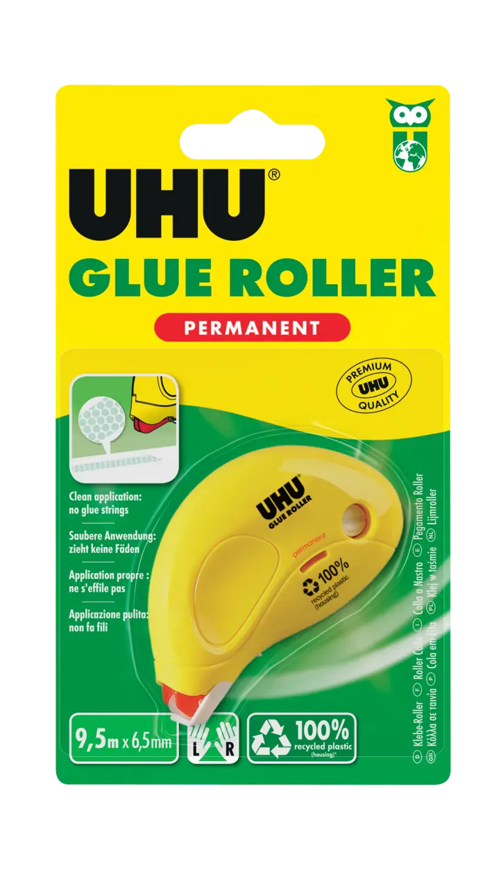 Ouvrez le capuchon intégré, positionnez le roller sur la matière que vous souhaitez coller, tirez vers l’arrière en pressant vers le bas. La colle est appliquée en appuyant légèrement et l’applicateur particulièrement large et souple garantit une pression de contact égale et de ce fait une meilleure application. Assemblez ensuite immédiatement les deux éléments à coller. La bande détendue peut être retendue si nécessaire en ajustant la vis d'ajustement de la bande.