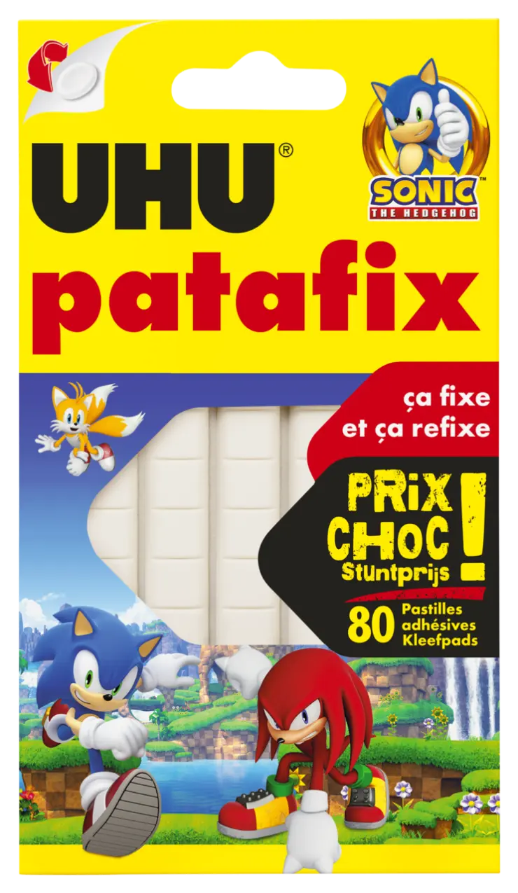 1) Détacher les pastilles. 2) Malaxer jusqu’à ce que la pâte soit souple. 3) Appliquer la patafix UHU au dos de l'objet à fixer. 4) Presser fermement contre le support. Pour réutiliser, recommencer à l'étape 2).
