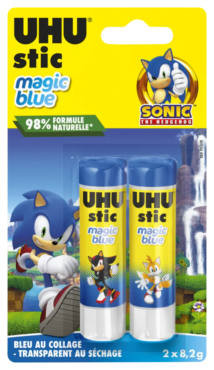 UHU stic Magic s'applique par une légère pression sur les supports à coller. Les composants sont assemblés directement après avoir appliqué la colle. La couleur bleue disparaît quelques secondes après l'application et elle devient transparente après séchage.