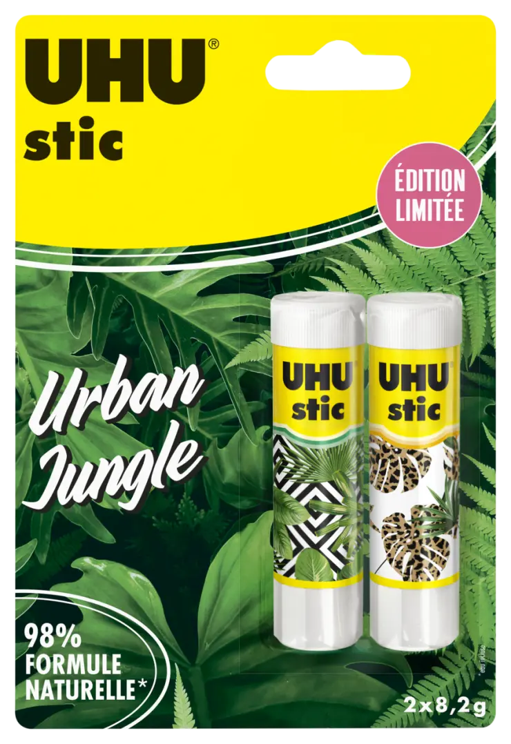 Le célèbre bâton de colle « Fabriqué en Allemagne » pourvu d'un bouchon à visser exclusif qui garantit que la colle ne dessèche pas. La formule est composée à 98 % d'ingrédients naturels (y compris l'eau) et est exempte de solvant. Colle solidement, rapidement et durablement, elle s'étale régulièrement, est hautement efficace et se lave à froid.