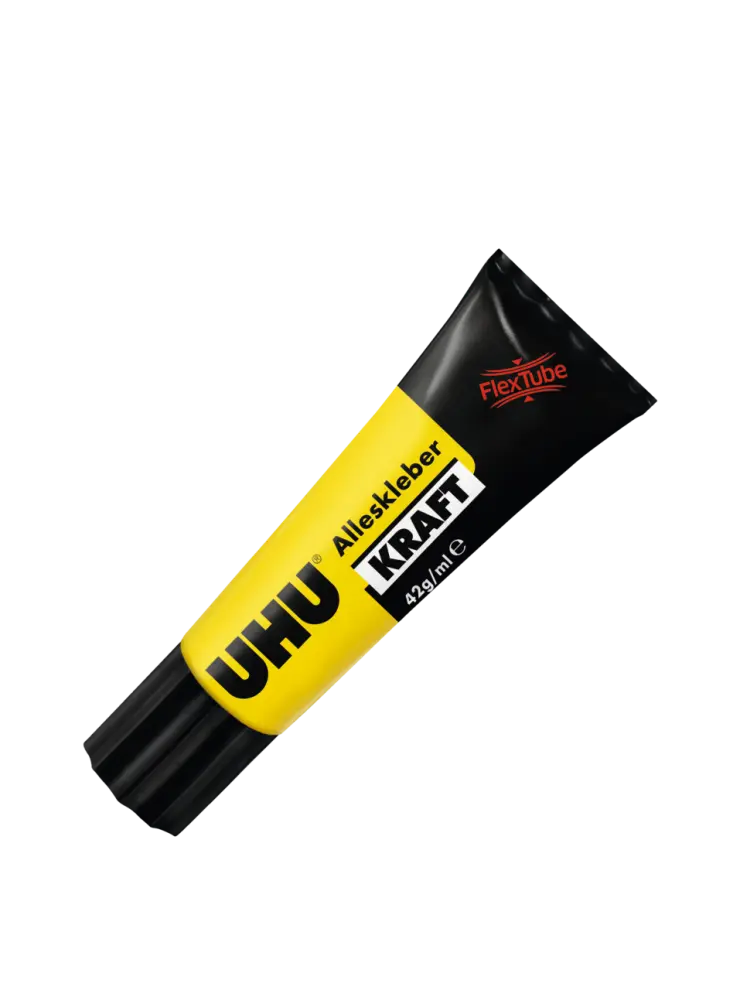 AP POWER, UHU All Purpose Adhesive Power univerzalno snažno ljepilo FLEX + CLEAN, prozirno, brzo i snažno univerzalno ljepilo s izvanrednom snagom lijepljenja u posebnoj mekanoj i nelomljivoj plastičnoj tubi. Osigurava čisto lijepljenje bez kapanja. Može se koristiti za jednostrano lijepljenje (mokro lijepljenje) ili obostrano lijepljenje (kontaktno lijepljenje). Osobito je prikladno za vidljive spojeve i prozirne materijale. Površina ljepila ostaje elastična te je otporna na UV zrake i s vremenom ne postaje lomljiva. Može se koristiti i pod vodom (npr. za PVC folije).