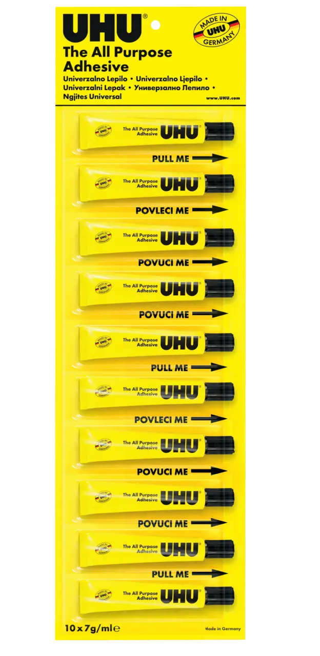 AP REGULAR, UHU All Purpose Adhesive univerzalno ljepilo, dokazano tekuće ljepilo od sintetičke smole za brzo i prozirno ljepljenje. Prikladno za univerzalnu uporabu kod kuće, u uredu i školi, za modeliranje itd. Brzo i trajno lijepi različite materijale. Ljepilo je kratko nakon nanošenja moguće popravljati i ne gužva papir.