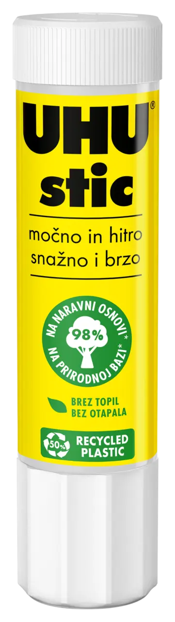 Poznato ljepilo u stiku „proizvedeno u Njemačkoj” s jedinstvenim poklopcem s navojem koji sprječava sušenje ljepila. Formula ljepila sastoji se od 98 % prirodnih sastojaka (uključujući vodu) i ne sadrži otapala. Lijepi snažno, brzo i trajno, lako se nanosi, visokoučinkovito je i ispire se hladnom vodom.