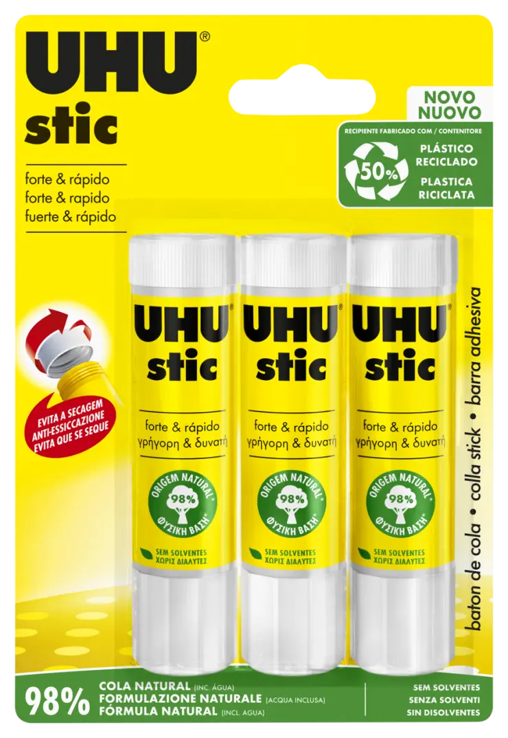 La famosa colla stick "Made in Germany" con un tappo a vite unico che ne impedisce l'essiccazione. La formula della colla è composta al 98% da ingredienti naturali (compresa l'acqua) ed è priva di solventi. Colla forte e resistente, è facile da applicare, altamente efficiente e, naturalmente, lavabile a freddo.