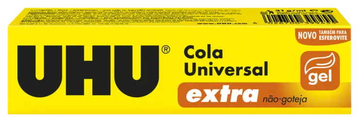 Universal - cola madeira, porcelana, Plexiglas®, metal, vidro, cerâmica, cabedal, feltro, cortiça, tecido, cartão, papel, Styrofoam® (esferovite) e outros materiais.