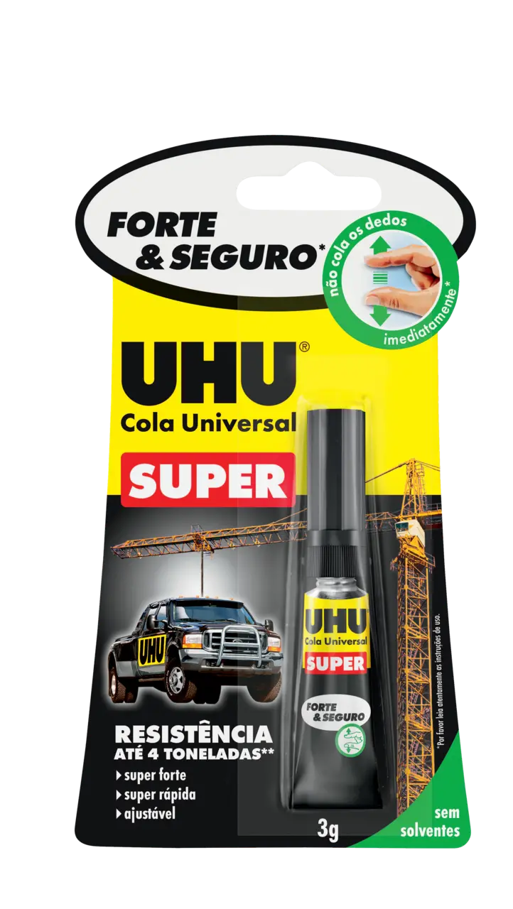 Universal - cola porcelana, cerâmica, muitos materiais plásticos, metal, madeira, couro,vidro, cabedal, borracha, Styrofoam® (esferovite), papel, cartão e muito mais.