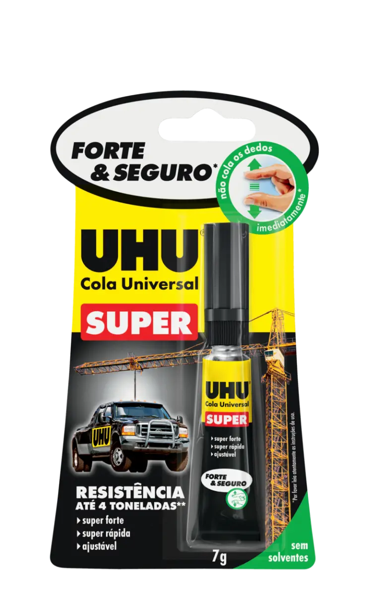 Universal - cola porcelana, cerâmica, muitos materiais plásticos, metal, madeira, couro,vidro, cabedal, borracha, Styrofoam® (esferovite), papel, cartão e muito mais.