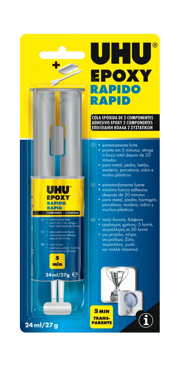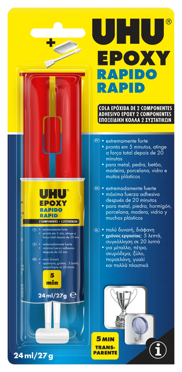 Adequada para reparação rápida, forte e invisível de muitos materiais, tais como loiça, porcelana, vidro, cabedal, madeira, pedra, metal, cerâmica. Entre si e em combinação.