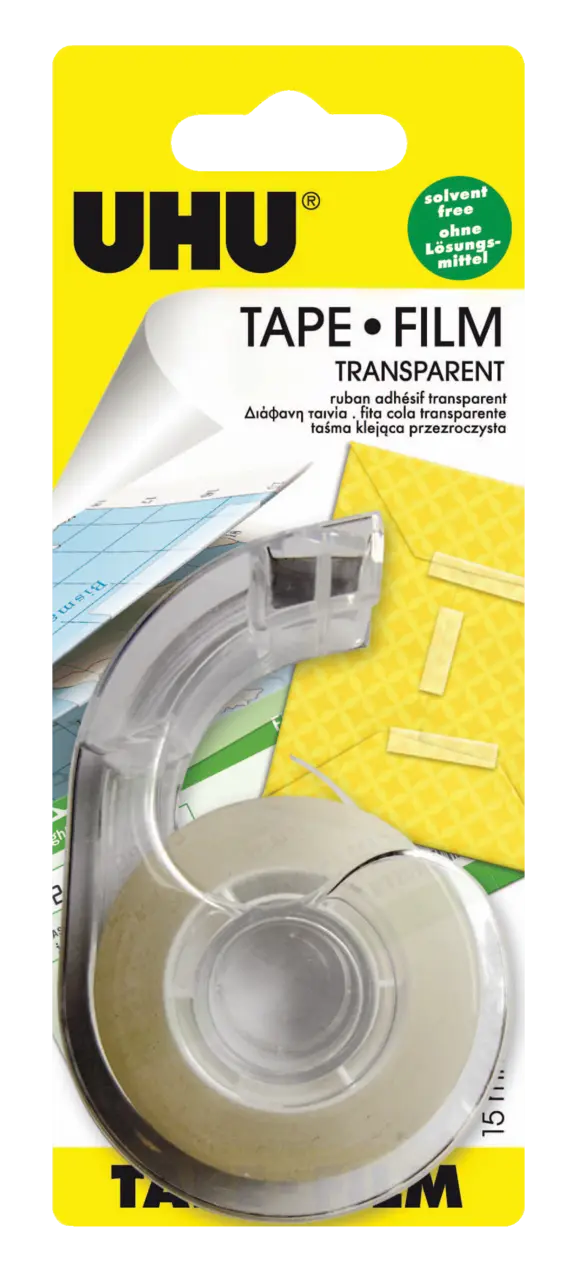 Fita transparente para muitas utilizações em casa, na escola e no escritório. Ideal para apertar, fixar e embalar. Disponível num dispensador prático e em rolos de recarga.