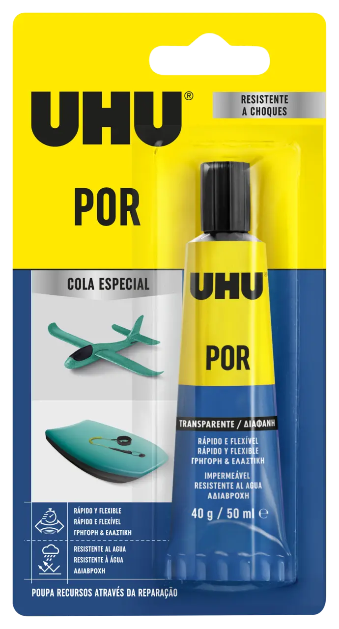 Cola Styrofoam® expandida (esferovite) também em combinação com outros materiais, por ex. madeira, papel, metal, cerâmica, gesso, tecido e vários plásticos.