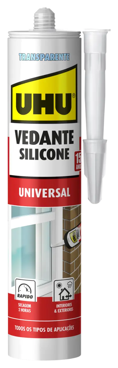 Remover imediatamente as manchas com aguarrás. Após a cura só pode ser removido mecanicamente ou com Removedor de resíduos de vedante de silicone UHU.