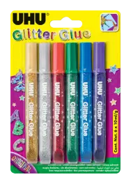 Desenrosque a tampa colorida. Pressionar suavemente o tubo para aplicar a cola. Voltar a colocar a tampa após a utilização. Dependendo da quantidade aplicada, a Glitter Glue fica seca ao toque após cerca de 60 minutos e completamente seca após cerca de 4 horas. O contacto com a água dissolve a UHU Glitter Glue, isso significa que não suporta as operações de lavagem.