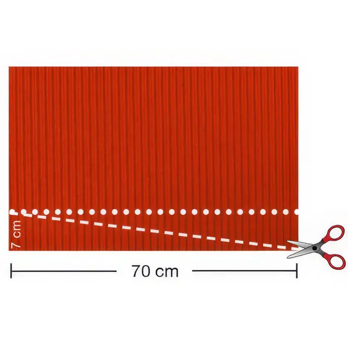 - Recorte um triângulo longo de cartão canelado sobre o comprimento (70 cm): No lado mais curto da folha, meça 7 cm, desenhe uma linha diagonal até ao canto e corte.